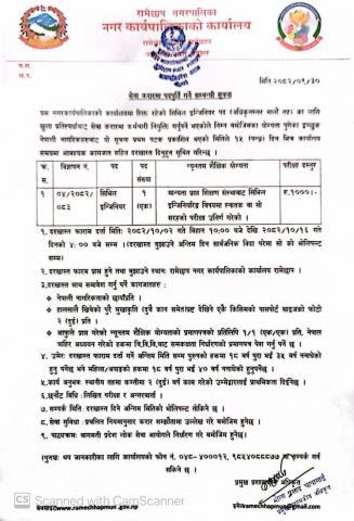 करार सेवामा पदपुर्ति गर्ने सम्बन्धी सूचना| ( सिभिल इन्जिनियर)