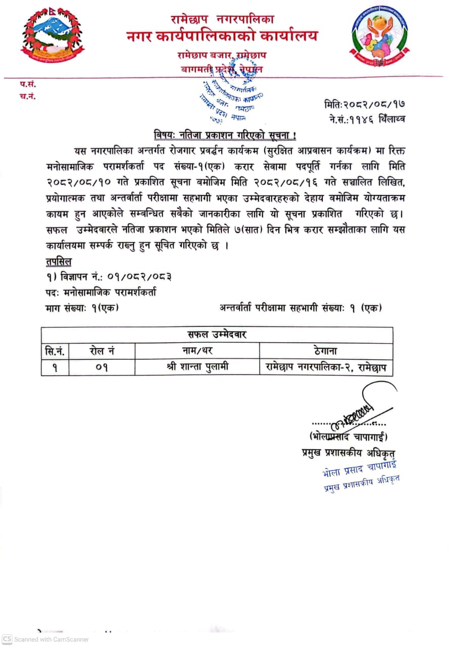 Home » मनोसामाजिक परामर्शकर्ताको नतिजा प्रकाशन सम्बन्धी सूचना।