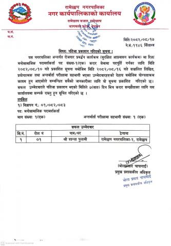 मनोसामाजिक परामर्शकर्ताको नतिजा प्रकाशन सम्बन्धी सूचना।