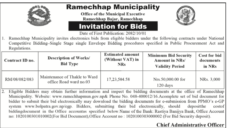 Invitation for bids. (maintenance of thakle to ward office road ward no.3)
