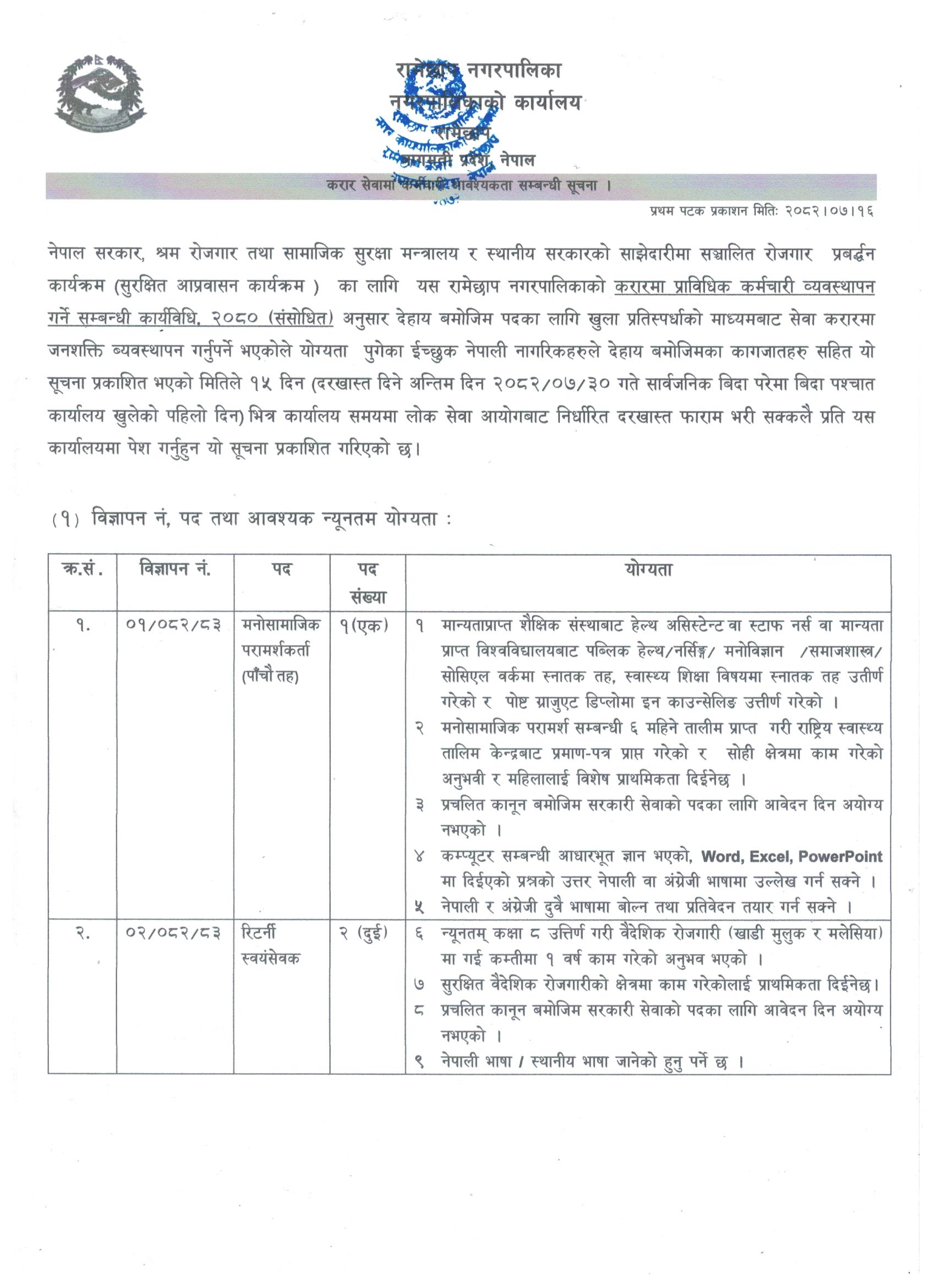 » करार सेवामा कर्मचारी आवश्यकता सम्बन्धी सूचना। (मनोसामाजिक परामर्शकर्ता र रिटर्नी स्वयंसेवक)
