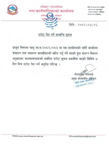 कार्यालय सञ्चचालन तथा मसलन्द सामग्रीहरु सम्बन्धी दररेट पेश गर्ने सम्बन्धि सूचना।