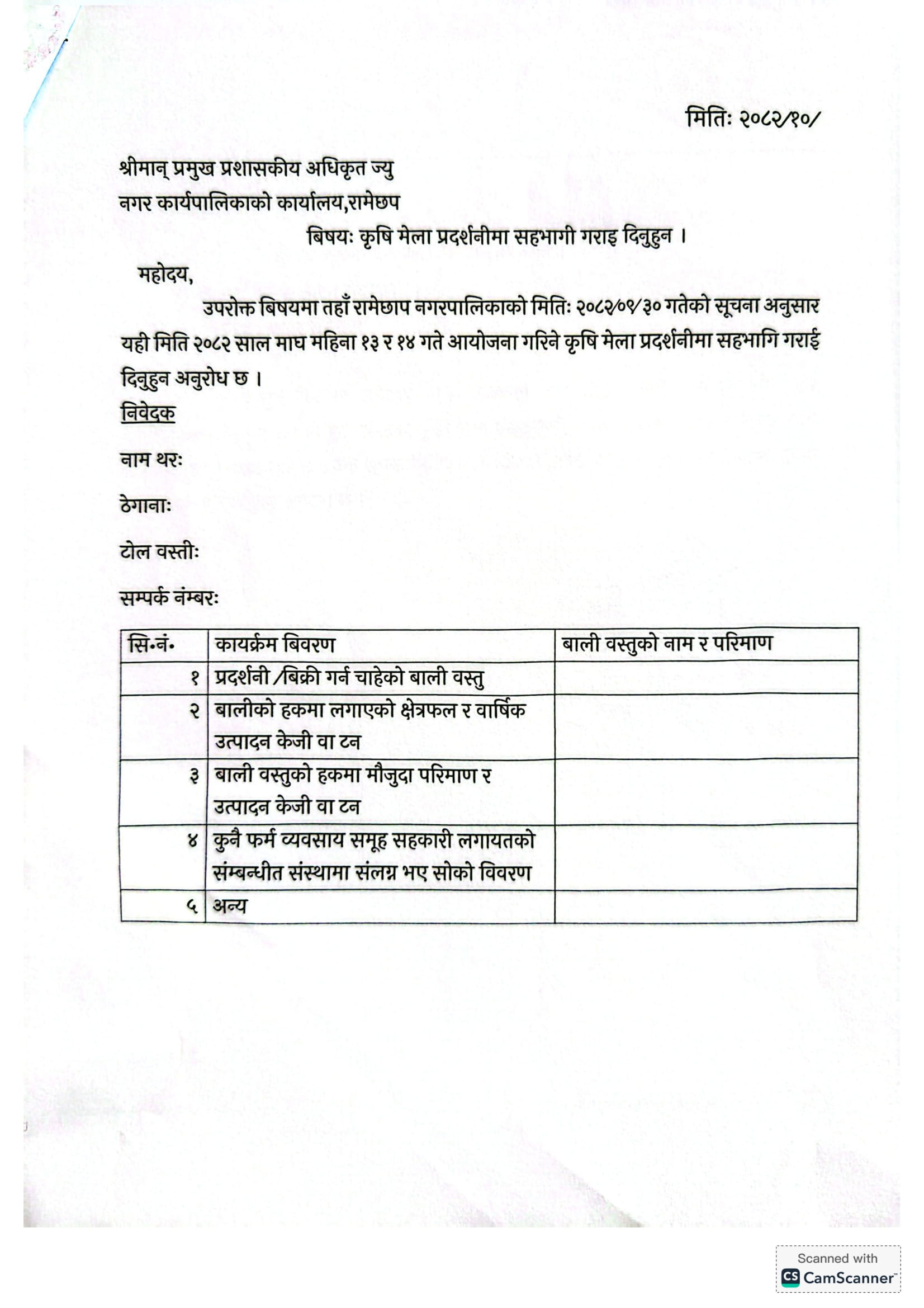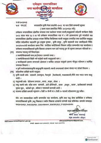 नगरस्तरिय कृषि मेला प्रदर्शनी २०८२ मा भाग लिने सम्बन्धी सूचना।