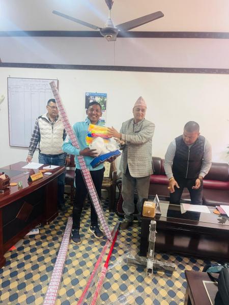 माध्यामिक विद्यालयहरुमा खेलकुद क्रियाकलाप सञ्चालनको लागि खेलकुद सामग्रीहरु हस्तान्तरण कार्यक्रम। (२०८२ मंसिर ६)